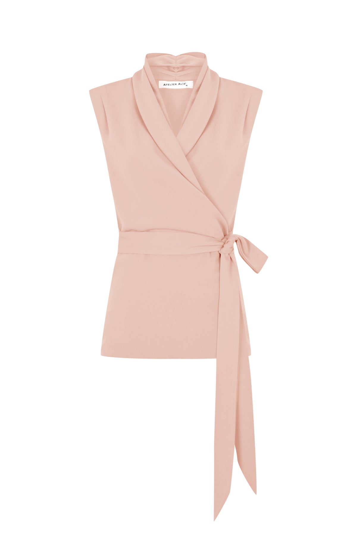 بلوزة ذات رقبة على شكل حرف V وصدر مزدوج.