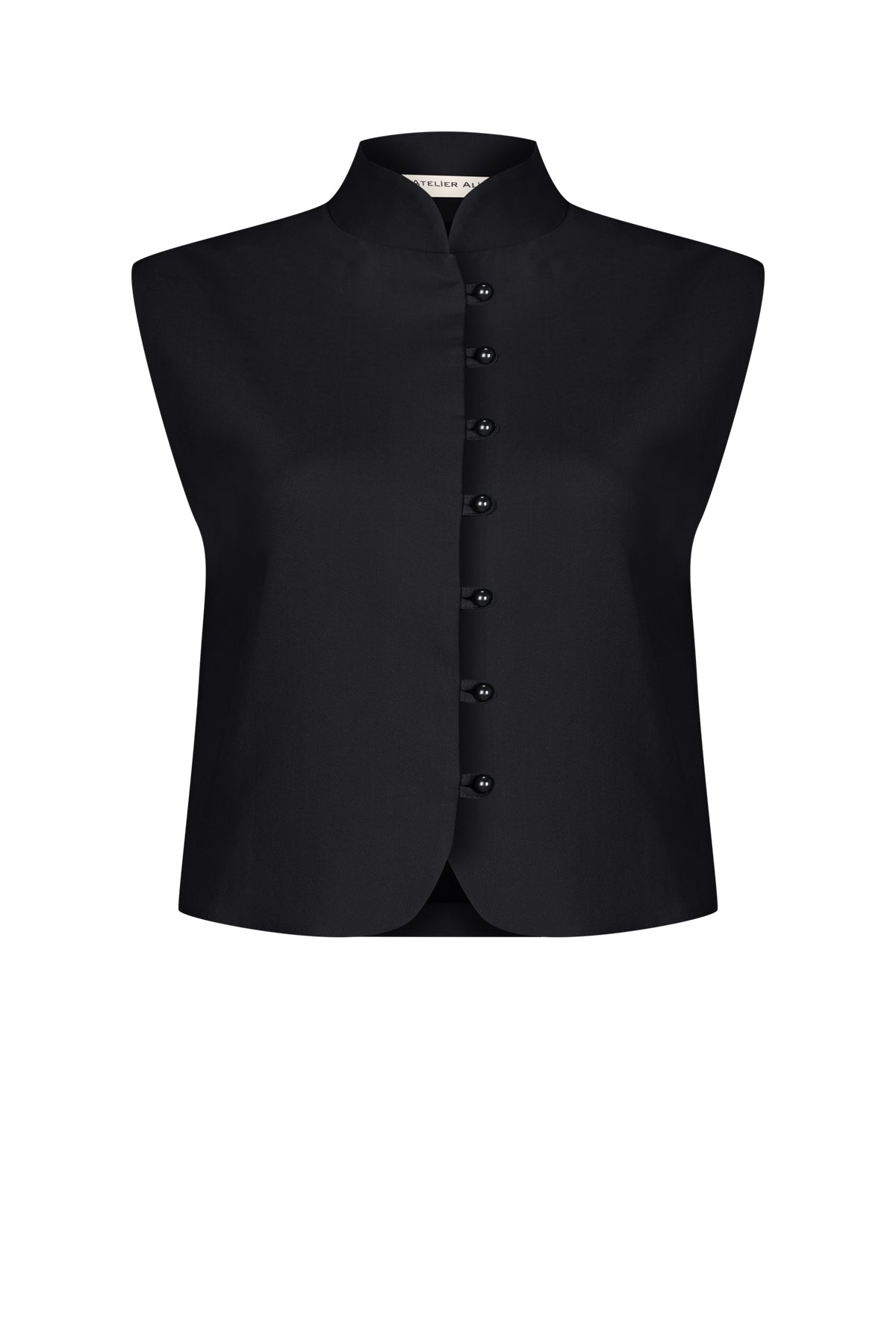 بلوزة بدون أكمام وياقة عالية.