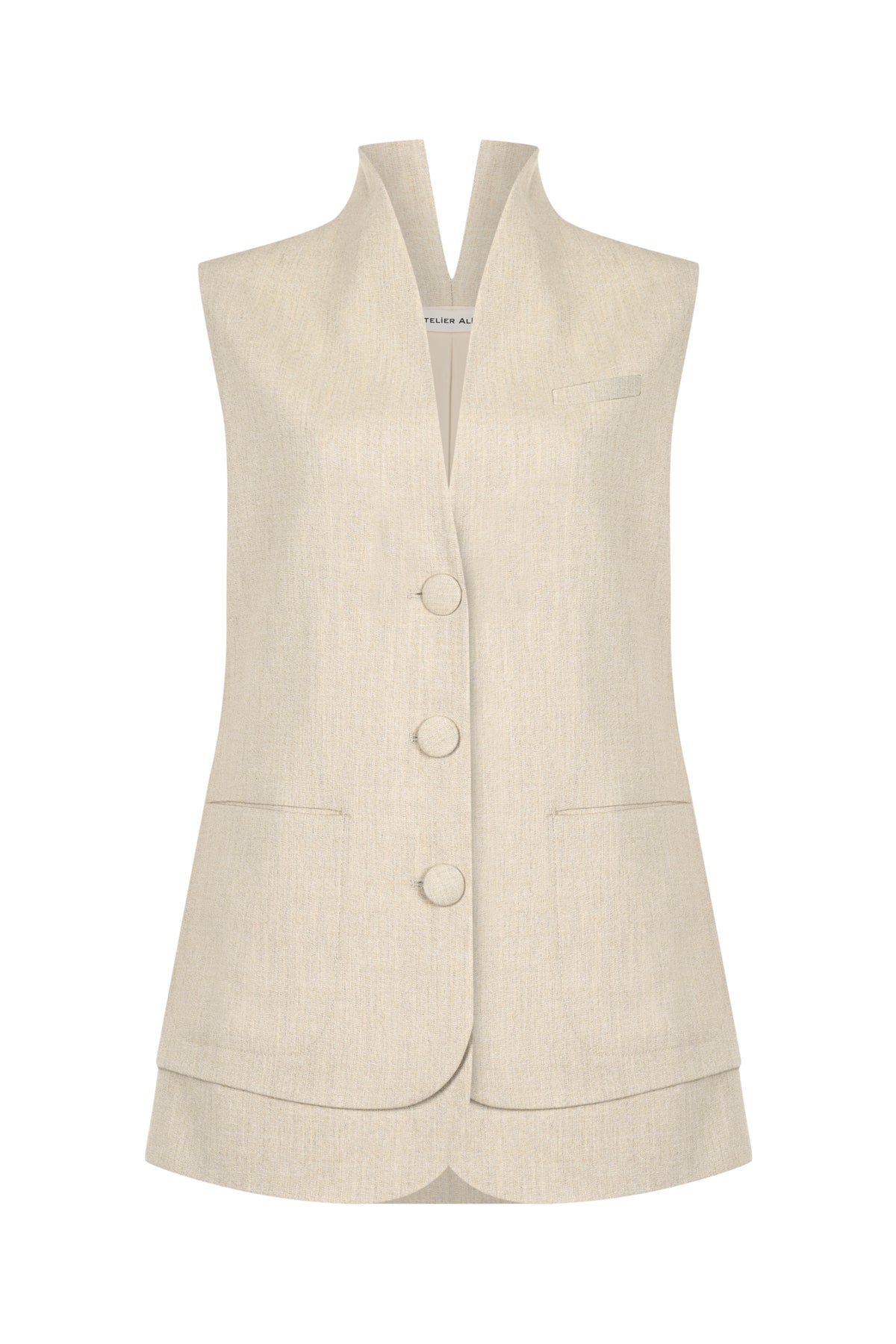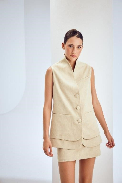 سترة بدون أكمام ذات رقبة على شكل حرف V.