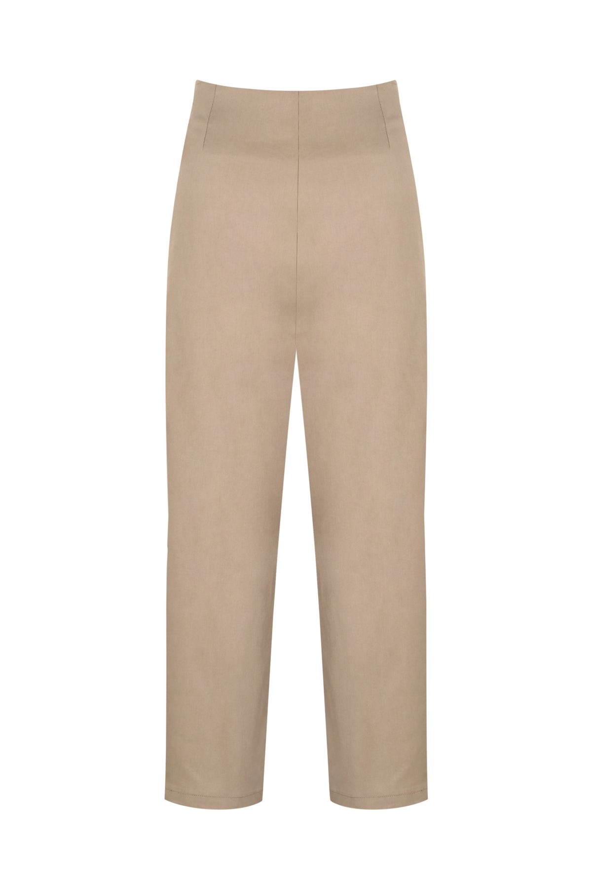 يحتوي الخصر على طيات وتفاصيل كبس. قفل الخطاف والزر