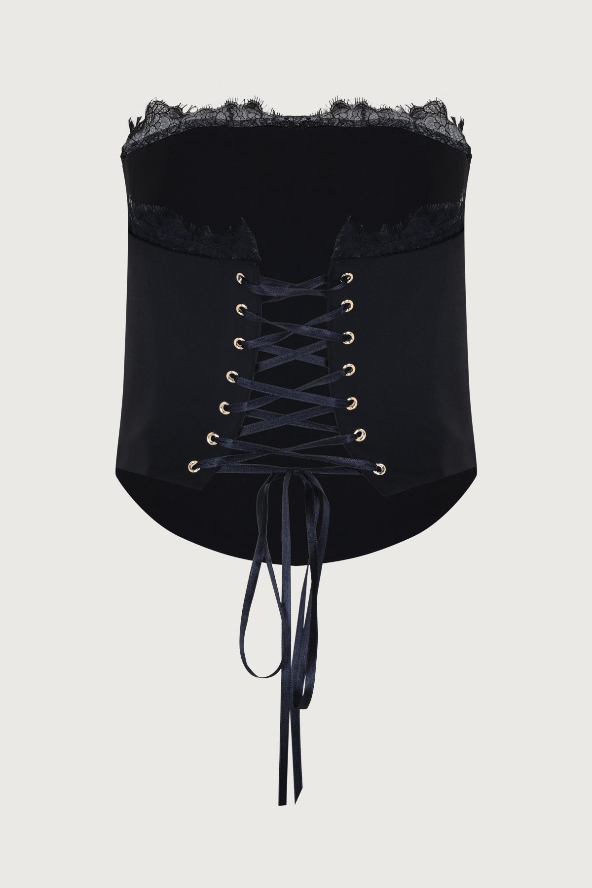 Ürün Özellikleri Kumaş içeriği %75 POLY %20 VIS %5 LYC Dantelli,balenli,arkadan bağlamalı korse.