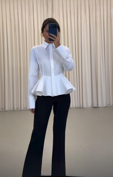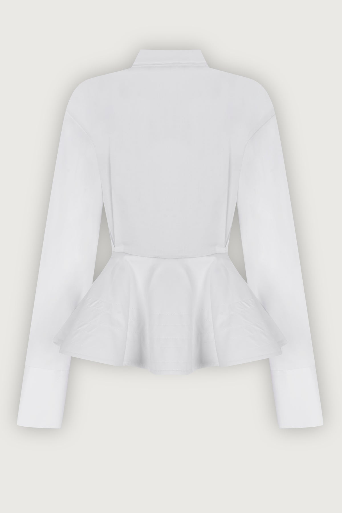 Ürün Özellikleri Kumaş içeriği %100 Cotton Düğme kapamalı, belden oturan ve peplum kesimli uzun kollu gömlek