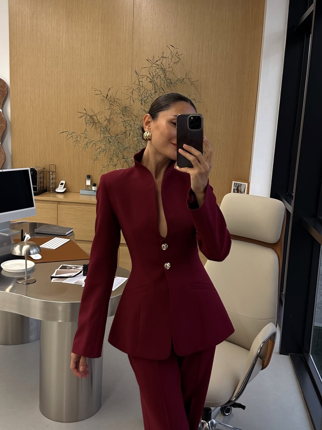 Önden iki düğmeli,belden oturan,hakim yaka ceket