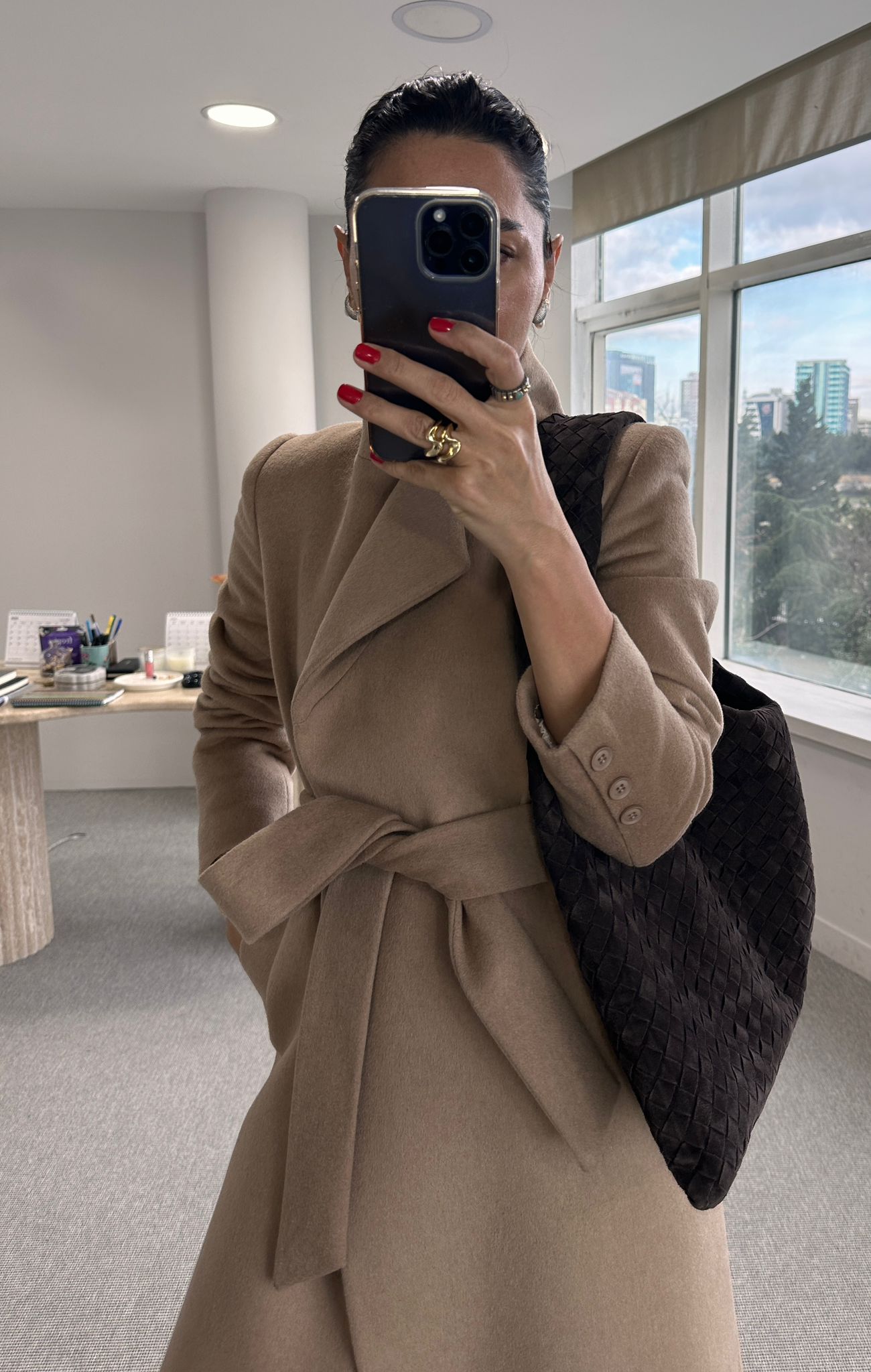 Önü tek düğme iliklemeli, beli kuşaklıdır.