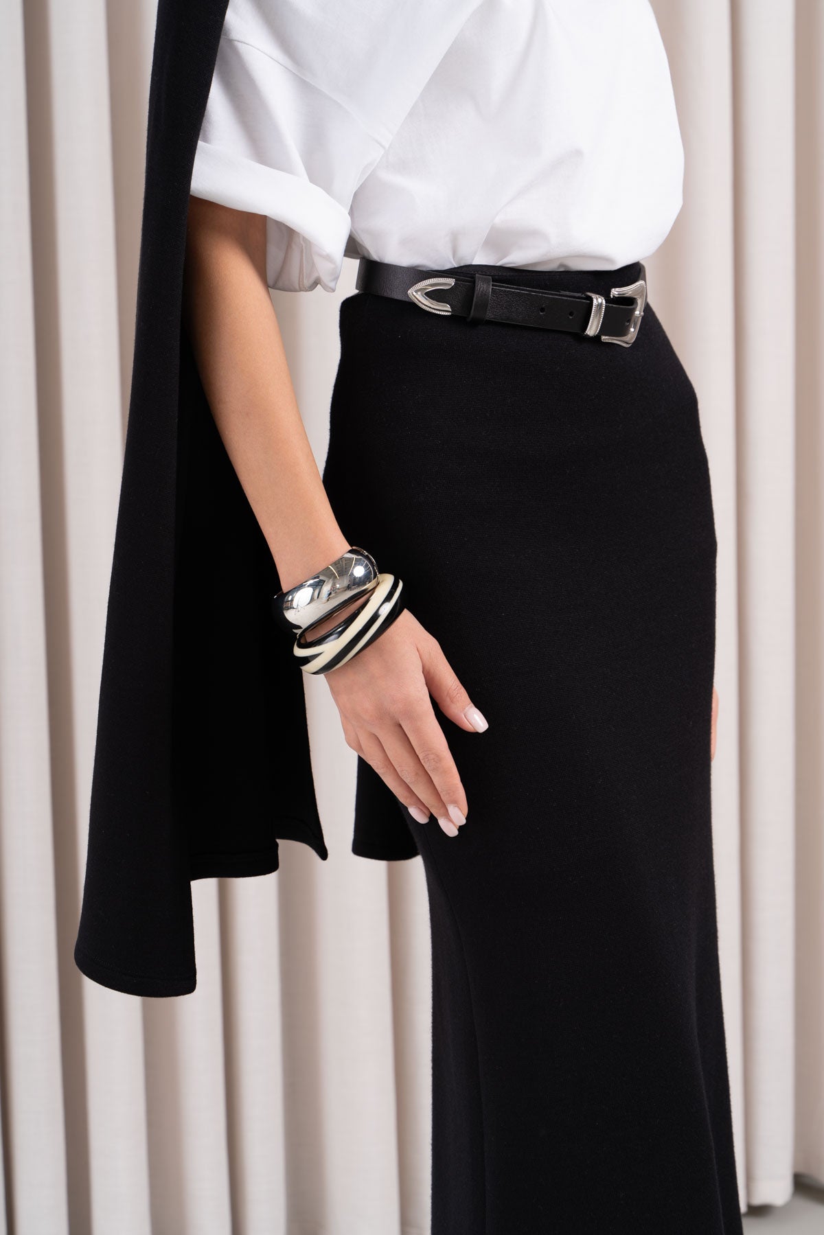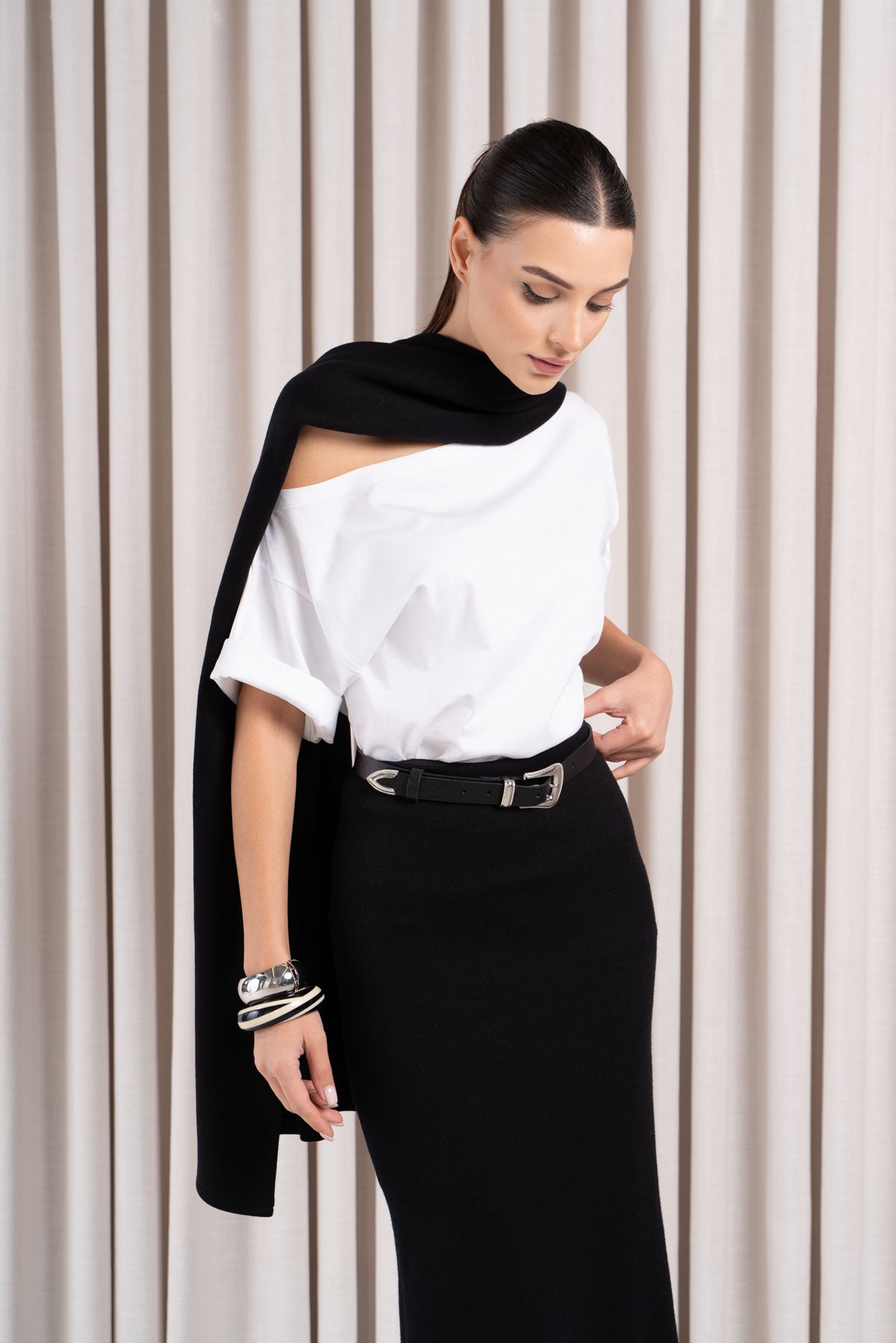 Yüksek bel, midi boy örme etek.