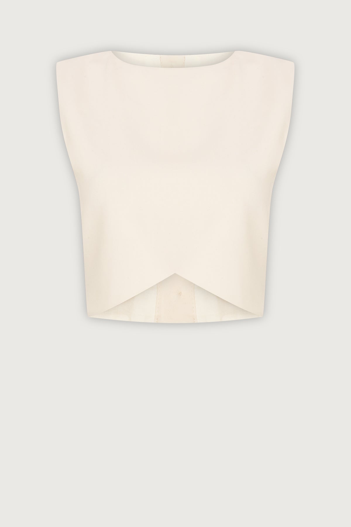 Arkadan düğme kapamalı,kolsuz,geometrik kesim bluz