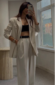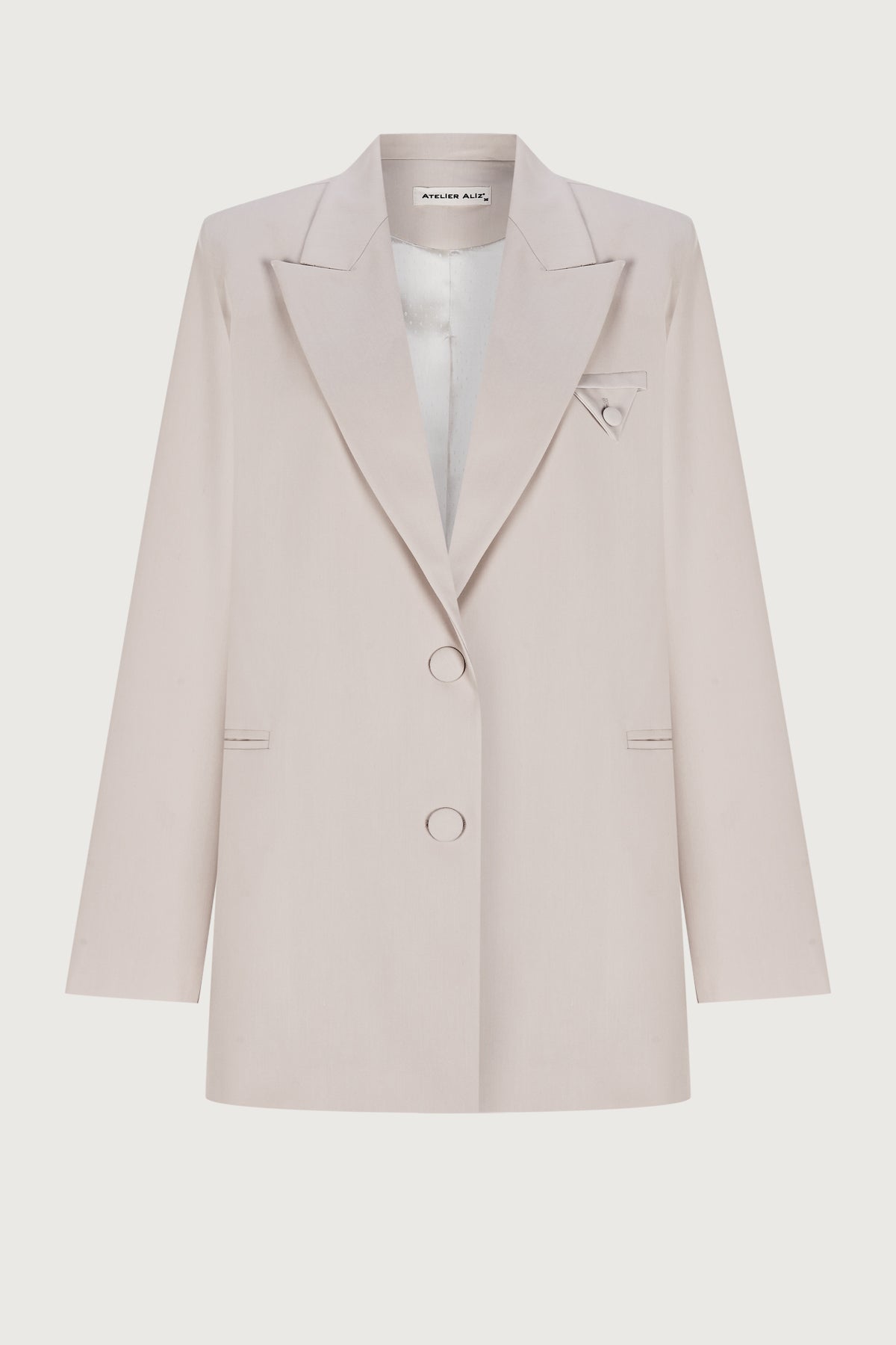 Çentikli yaka blazer ceket. Ön panel ve göğüs hizası fileto cep detaylıdır.