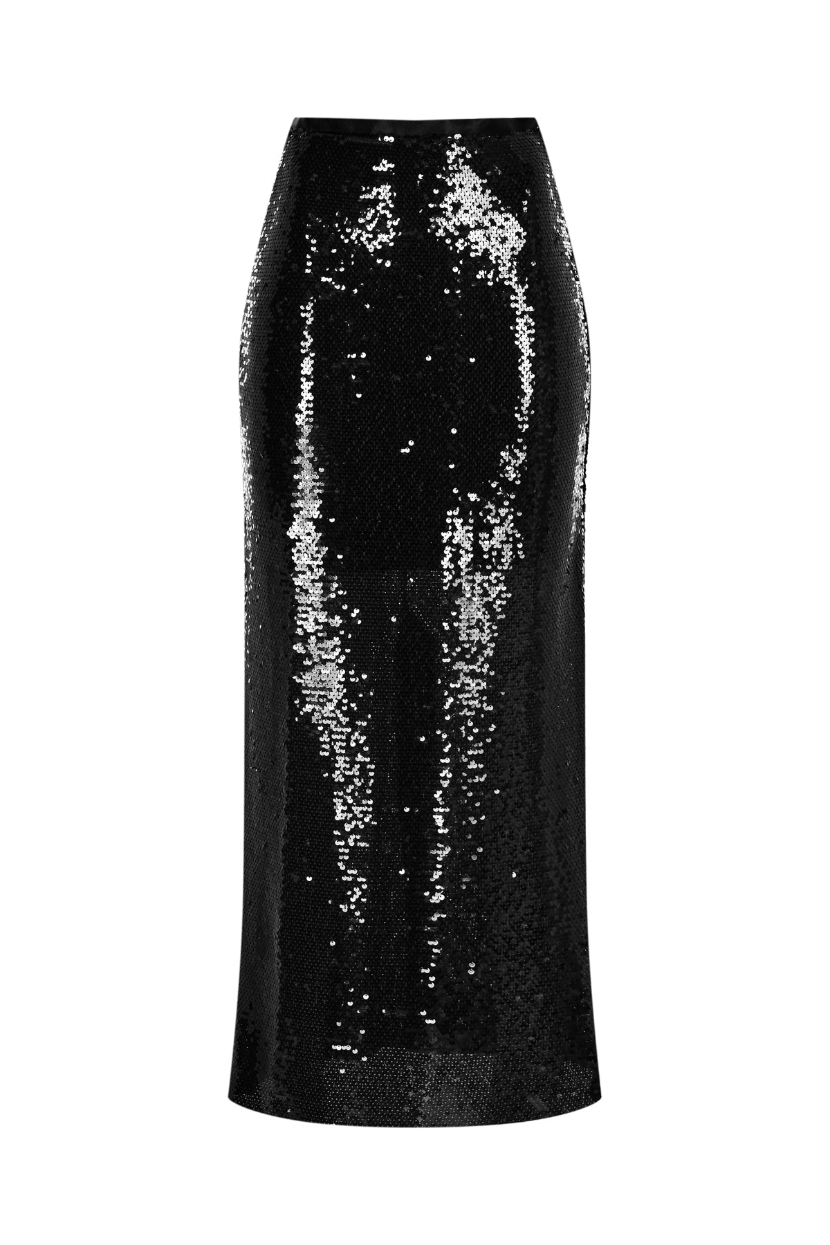 Arkadan kapalı yırtmaçlı, düz payet etek.