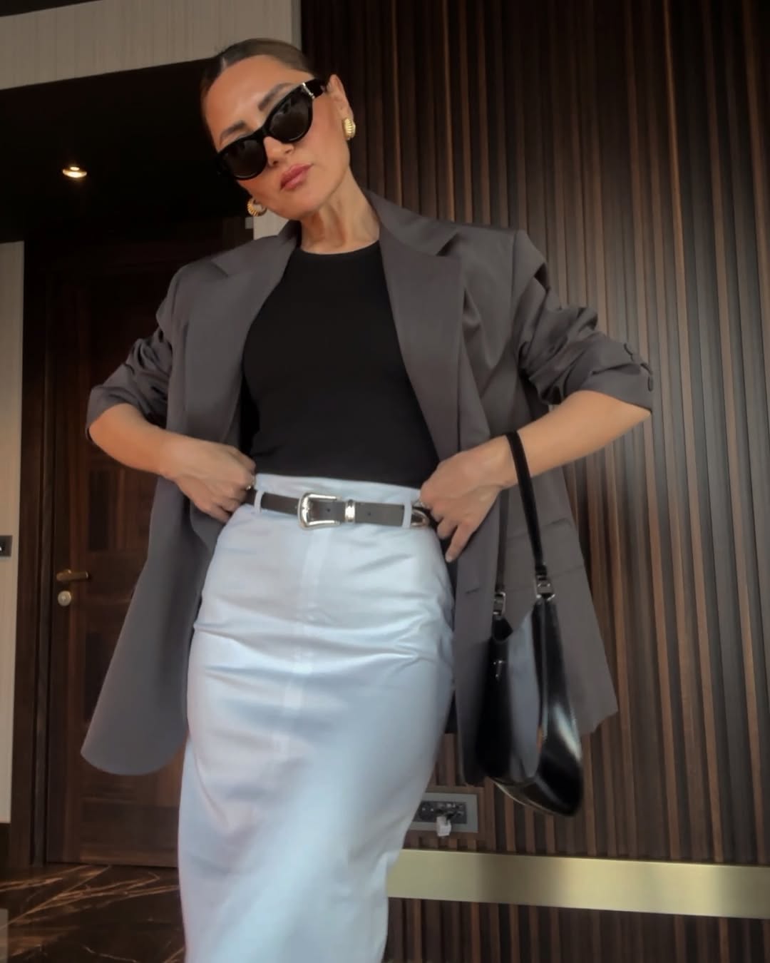 Yüksek bel, midi boy etek.
