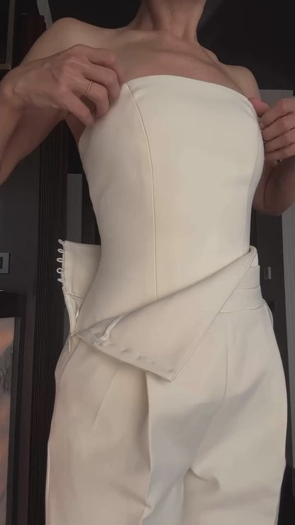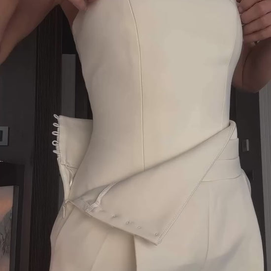 Sol yandan gizli fermuar ve top düğme kapamadır.